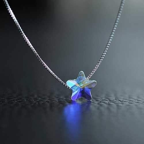 Square Cube S925 Silver Water Drop Star Crystal Necklace