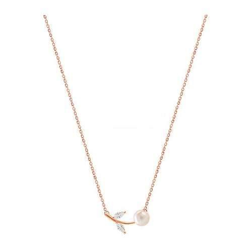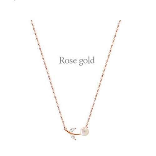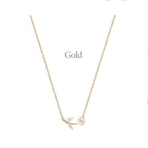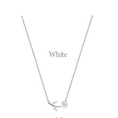 S925 Sterling Silver Rhinestone Artificial Pearl Leaves Short Clavicle Necklace