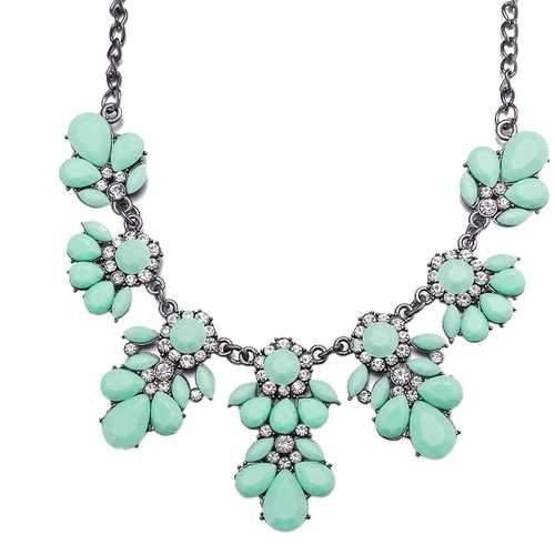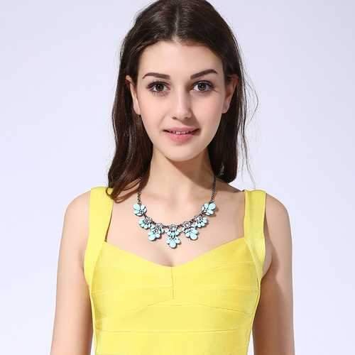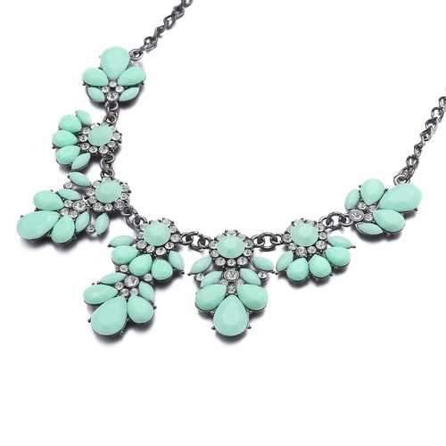Cyan Stylish Collar Necklace Resin Drop Shape Flower Crystal Fresh Summer Item