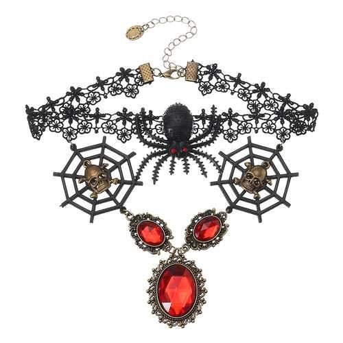 Vintage Lace Skull Head Choker Crystal Spider Web Necklace Halloween Party Accessories