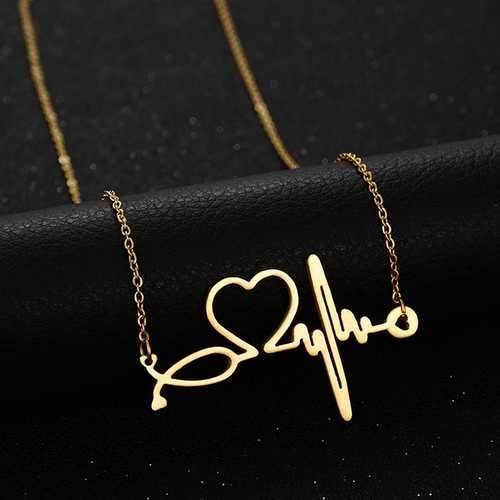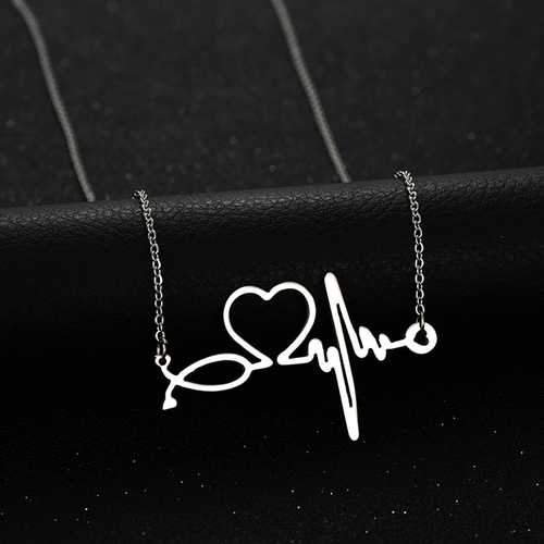 Heartbeat Electrocardiogram Heart Pendant Chain Necklace
