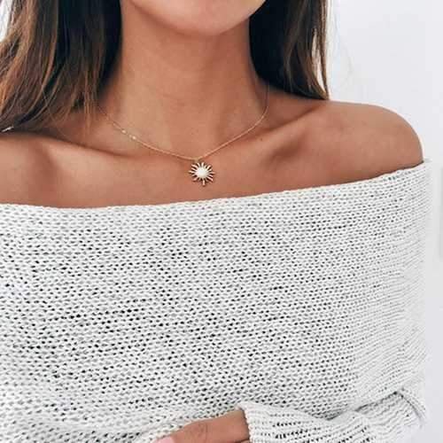 Fashion Silver Gold Sun Flower Pendant Necklace for Women