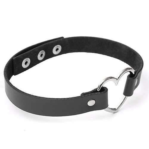 Punk Heart Button Leather Choker Collar Necklace Handmade Jewelry for Women