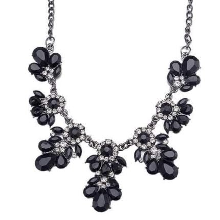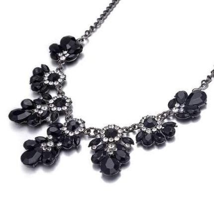 Trendy Elegant Black Collar Necklace Resin Flower Crystal Stylish Women Jewelry