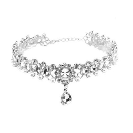 Trendy Crystal Drop Artificial Pearl Choker Women Necklace