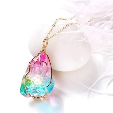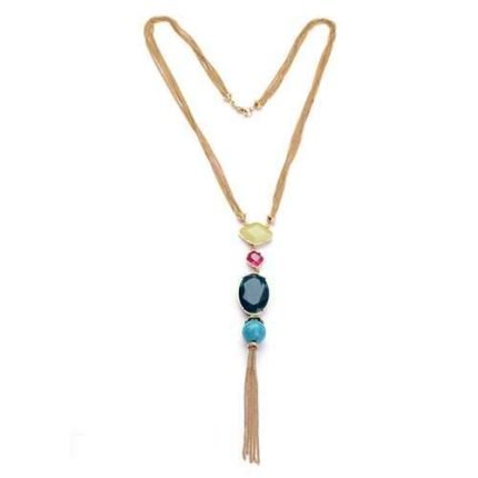 Trendy Natural Stone Multicolor Sweater Chain Pendant Necklace for Women